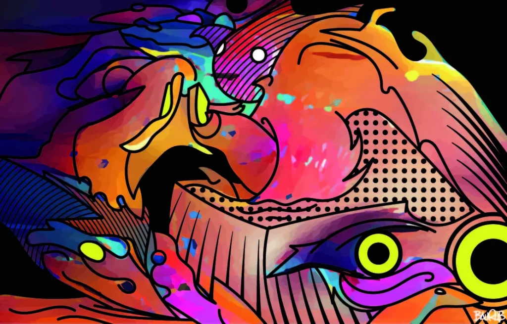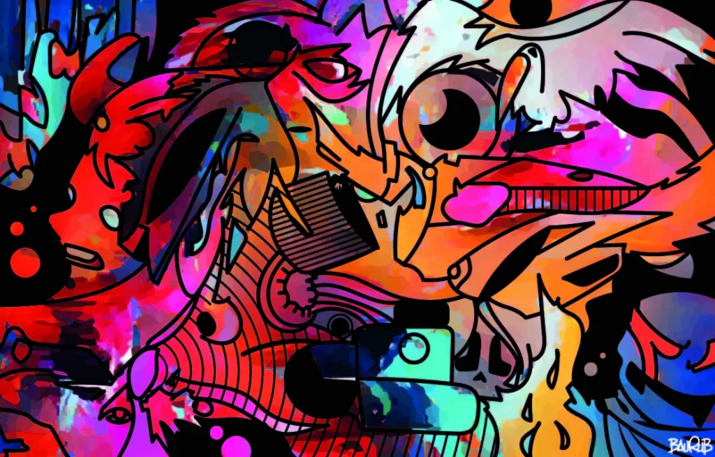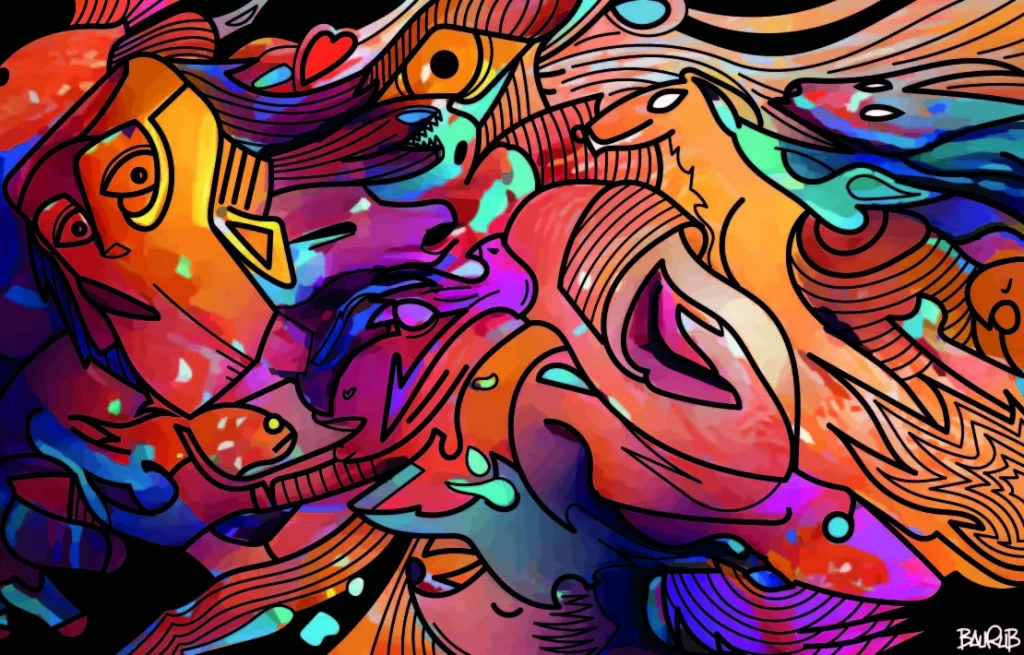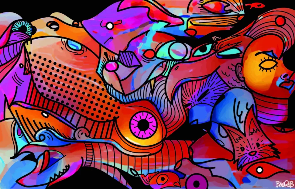 Cada salpicadura es un recuerdo en forma de nubes que forman parte de un mismo sueño, que al expandirse y mezclarse los colores, nacen trazos formando elementos ligados todos entre si, dejando ver dicho sueño.
